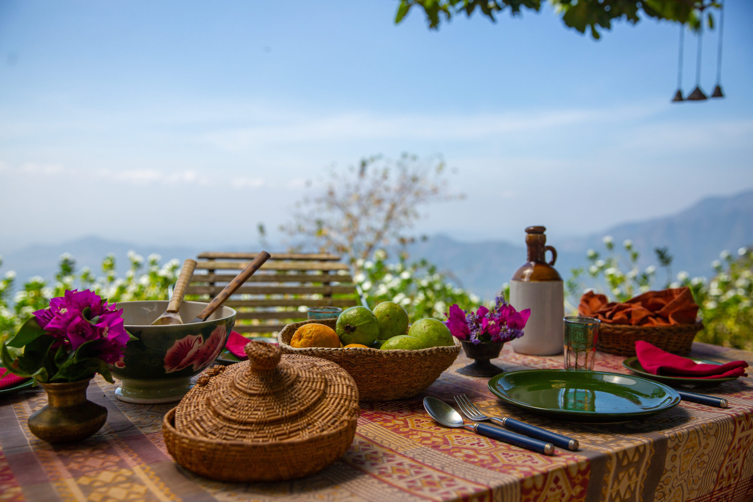 Garden dining with valley views